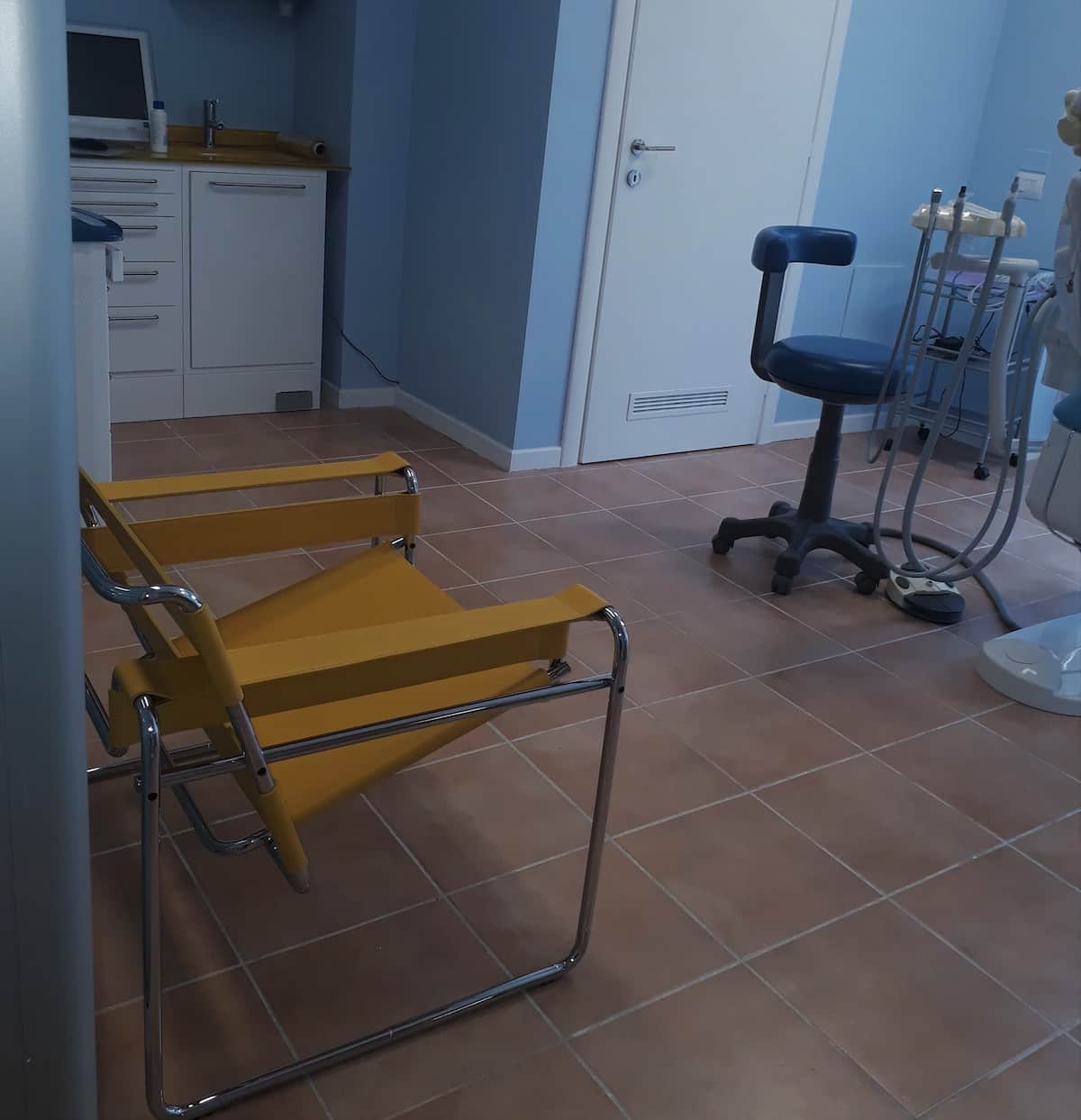 Situazione di partenza: amplio locale, con finiture anni '80, comprendente l’intero piano terra di una palazzina, da cui ricavare n. 2 locali commerciali, uno de quali da adibire a Studio Dentistico; necessità di nuova distribuzione degli spazi e di nuovi impianti consoni alla funzionalità della nuova destinazione d'uso. Nella progettazione della nuova distribuzione degli spazi (sala d'attesa, ufficio/reception, laboratorio odontotecnico, studi dentistici, ufficio) si è dovuto tenere conto del passaggio della luce, proveniente da fonti esterne, e dare luogo a spazi adatti alle nuove funzioni.